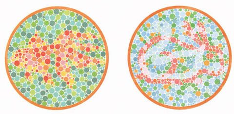 Here, protanopes read 6; deuteranopes read 2; others read both.